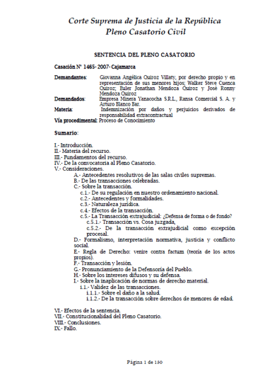 I Pleno Casatorio Civil N° 1465-2007